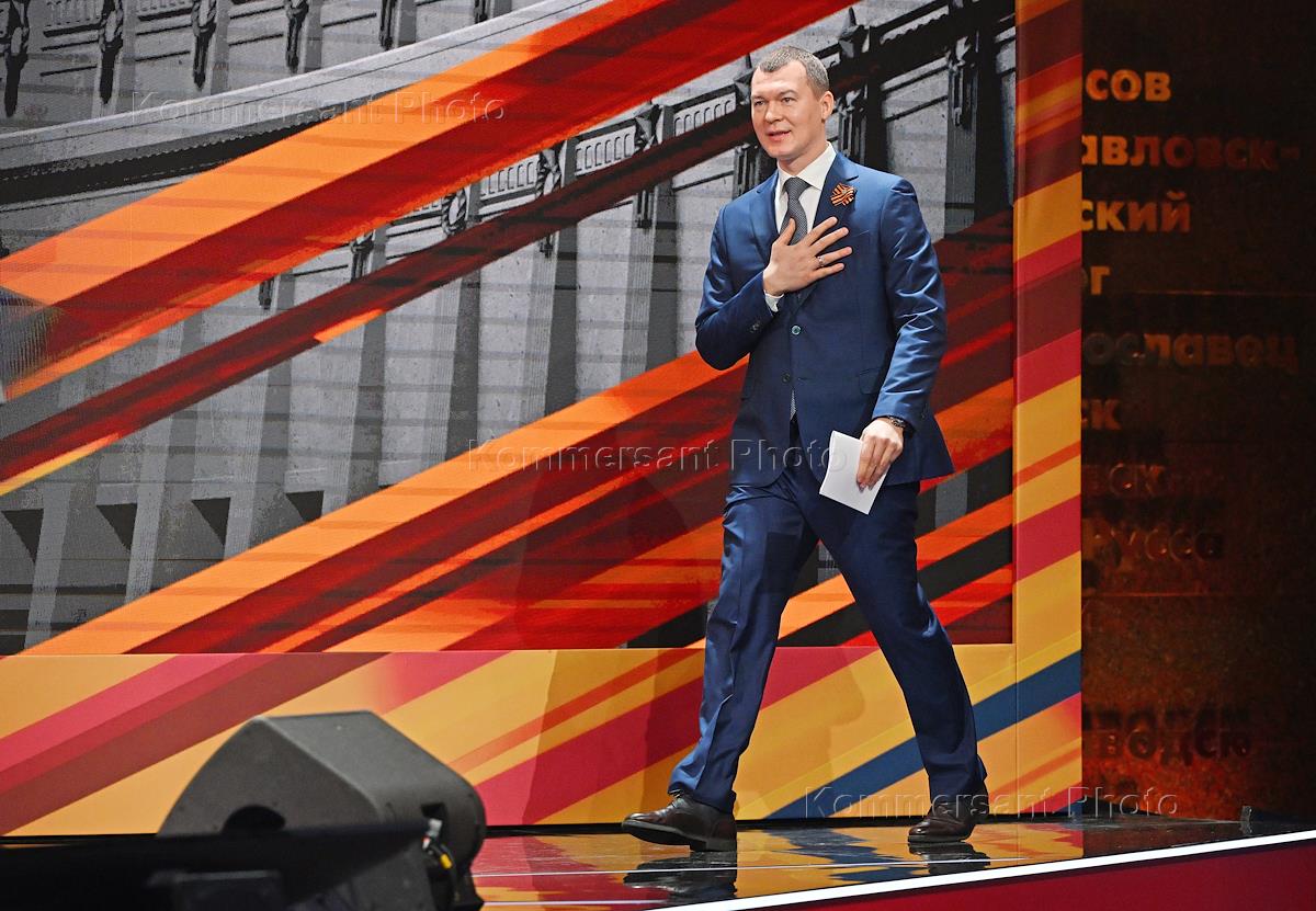 Федеральный просветительский марафон "Знание. Первые. 80 лет Победы" в музее Победы на Поклонной горе. Министр спорта России Михаил Дегтярев перед началом выступления "Сила духа и тела: вклад спортсменов в Великую Победу".