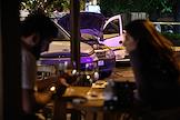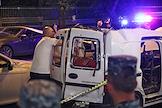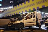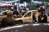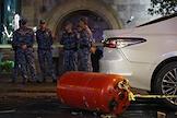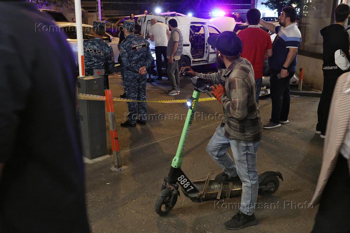 Обстановка на месте взрыва газового баллона в машине Opel на улице Сарьяна в Ереване. Сотрудники полиции на месте происшествия.