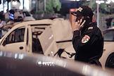 Обстановка на месте взрыва газового баллона в машине Opel на улице Сарьяна в Ереване. Сотрудник полиции на месте происшествия.