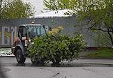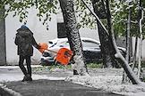 Виды Москвы во время снегопада. Жанровая фотография. Вывооз обрезанных веток деревьев.