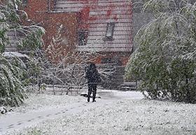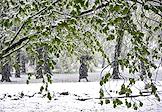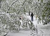 Виды Москвы во время снегопада. Жанровая фотография. Ветви деревьев, согнутые под тяжестью мокрого снега.