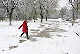 Виды Москвы во время снегопада. Жанровая фотография. Женщина в парке во время снегопада.
