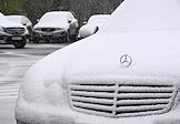 Виды Москвы во время снегопада. Жанровая фотография. Занесенный снегом автомобиль Mercedes.