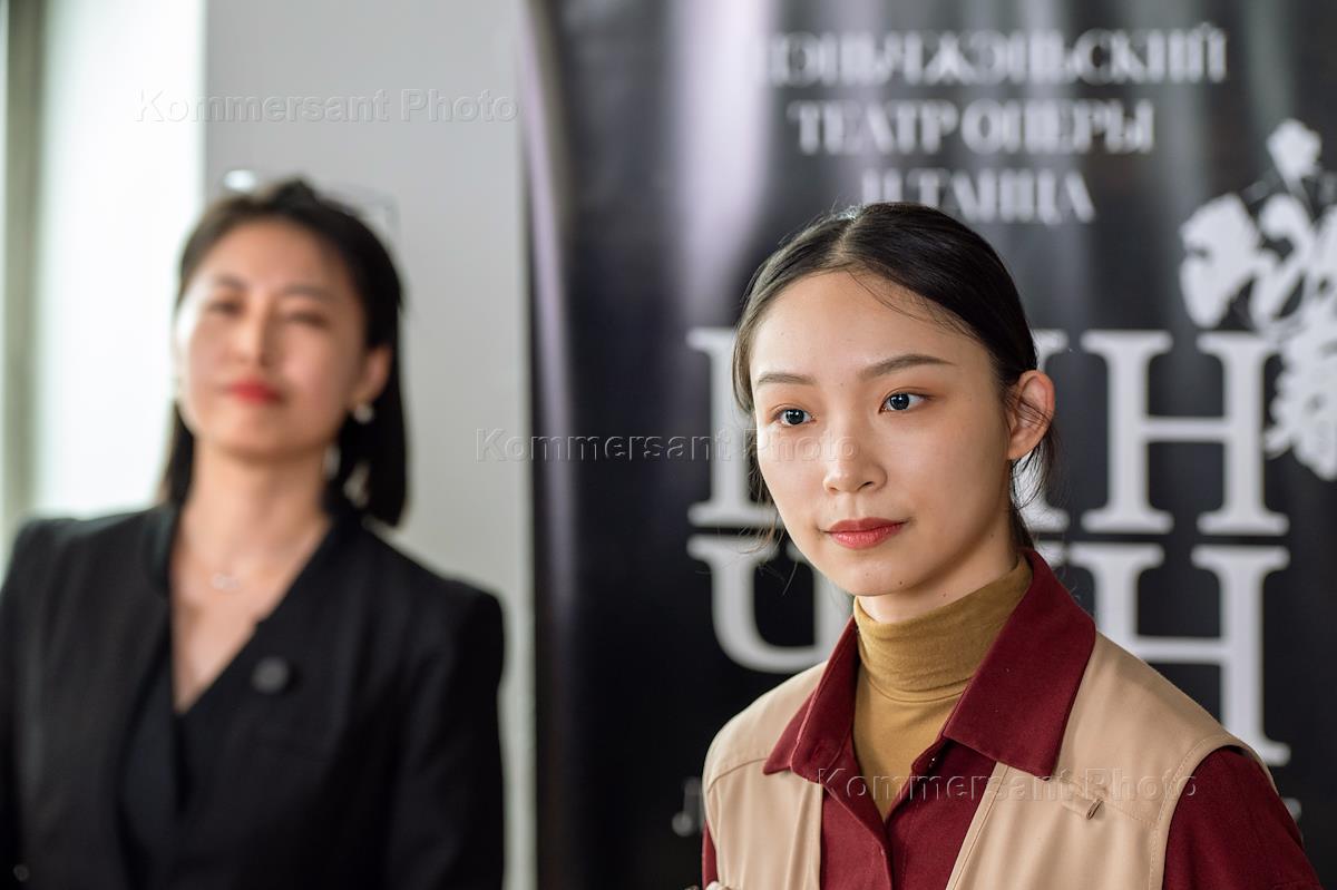 Закрытый показ танцевальной драмы "Вин Чун: легенда о мастере Кунг-Фу" Шэньчжэньского театра оперы и танца на Новой сцене Мариинского театра (Мариинский 2). Солистка Шэньчжэньского театра оперы и танца Сюй Тяньху во время пресс-подхода.