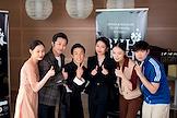 Закрытый показ танцевальной драмы "Вин Чун: легенда о мастере Кунг-Фу" Шэньчжэньского театра оперы и танца на Новой сцене Мариинского театра (Мариинский 2). Солистка Шэньчжэньского театра оперы и танца Сюй Тяньху (слева), премьер Шэньчжоньского театра оперы и танца Чан Хунцзи (третий слева), директор школы Багуачжан Ван Юаньлинь (вторая справа) и солист Шэньчжэньского театра оперы и танца Фунг Хаоран (справа) после пресс-подхода.