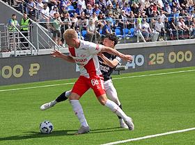 Мир Российская Премьер-Лига (РПЛ) 2024/2025. 27-й тур. Матч между командами "Факел" (Воронеж) - "Спартак М" (Москва) на стадионе "Факел". Игрок команды "Спартак" Руслан Литвинов (справа) во время матча.