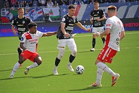 Мир Российская Премьер-Лига (РПЛ) 2024/2025. 27-й тур. Матч между командами "Факел" (Воронеж) - "Спартак М" (Москва) на стадионе "Факел". Игрок команды "Спартак" Руслан Литвинов (слева) во время матча.