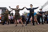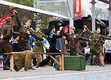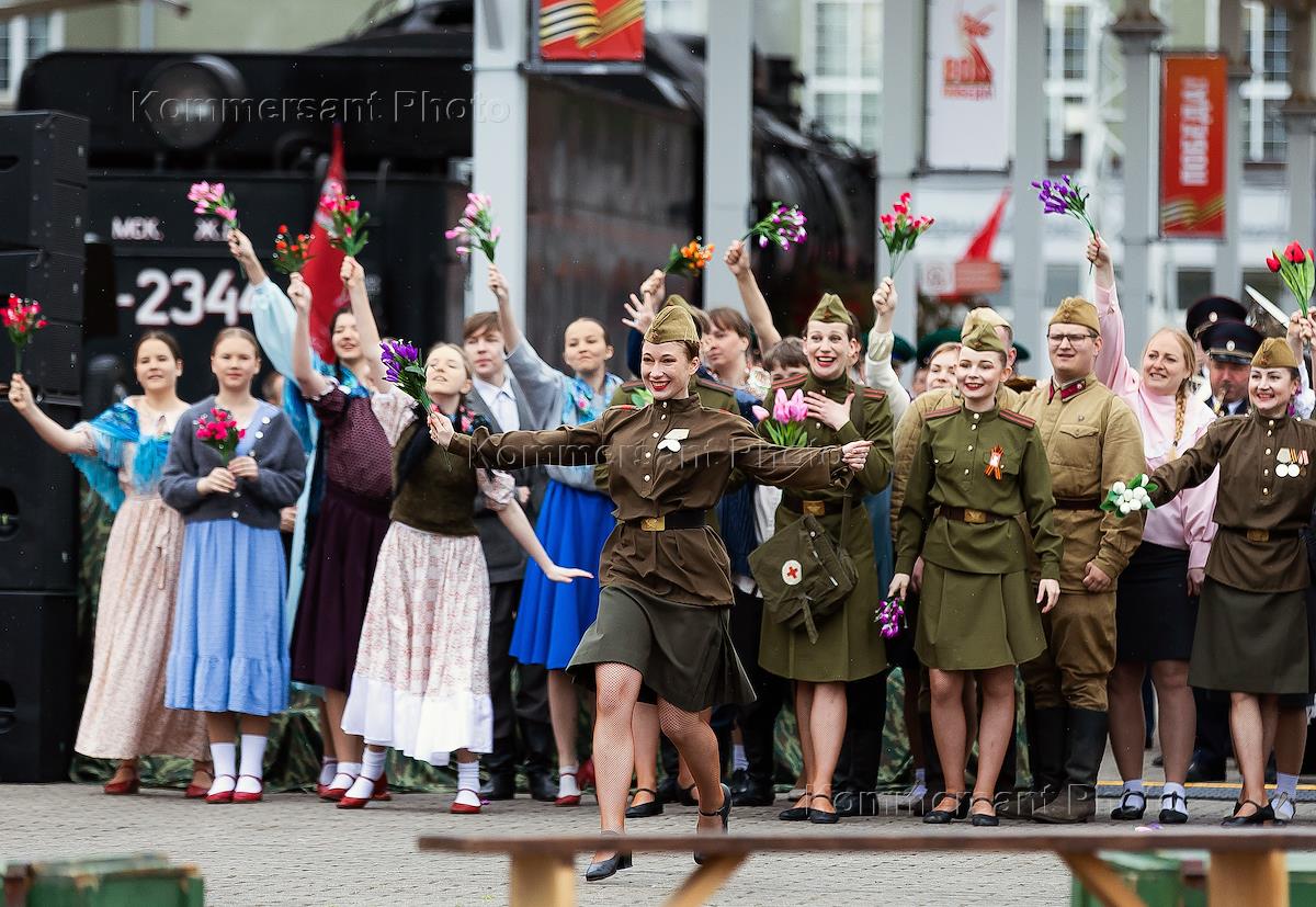 Акция "Эшелон Победы", посвященная 80-летию Победы в Великой Отечественной войне, на Северном вокзале в Калининграде. Выступление артистов на акции.