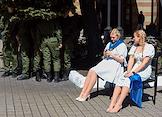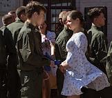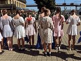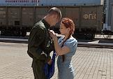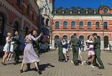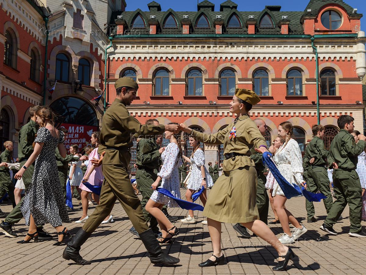 Акция "Вальс Победы" на железнодорожном вокзале в Дебальцево. Участники акции.