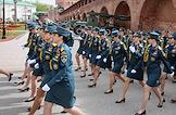 Генеральная репетиция военного парада, посвященного 80-й годовщине Победы в Великой Отечественной войне, на площади Минина и Пожарского. Военнослужащие-женщины во время репетиции.