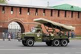 Генеральная репетиция военного парада, посвященного 80-й годовщине Победы в Великой Отечественной войне, на площади Минина и Пожарского. Самоходная ракетная установка во время репетиции.