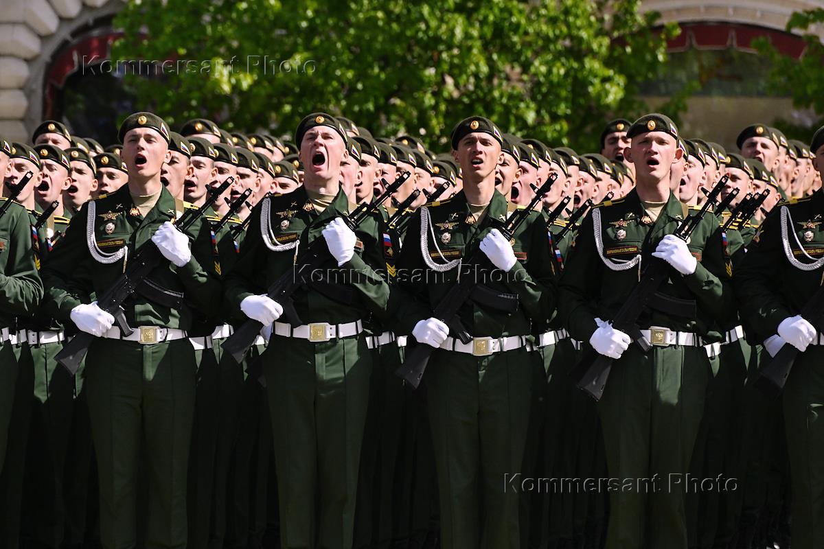 Военный парад, посвященный 80-й годовщине Победы в Великой Отечественной войне, на Красной площади. Парадный расчет Михайловской военной артиллерийской академии во время парада.