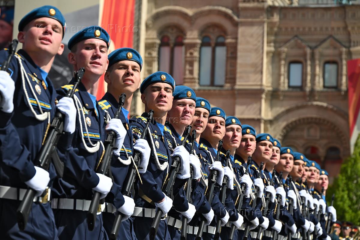 Военный парад, посвященный 80-й годовщине Победы в Великой Отечественной войне, на Красной площади. Парадный расчет Военного университета Министерства обороны России.