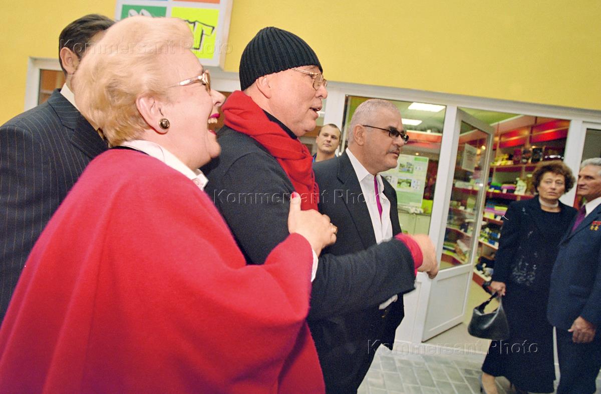 Церемония открытия оптово-торгового комплекса для товаров легкой и текстильной промышленности "ТекстильПрофи". Актеры Владимир Конкин (слева) и Нина Гребешкова (справа) на церемонии.