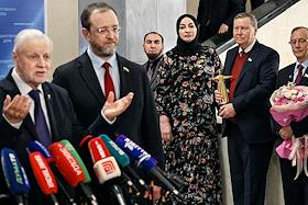 Пленарное заседание Государственной думы (ГД) России. Певица из Чечни Макке Межиева перед началом заседания.