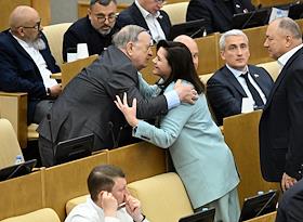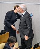 Пленарное заседание Государственной думы (ГД) России. Слева направо: член комитета ГД России по международным делам Роза Чемерис, заместитель председателя комитета ГД России по государственному строительству и законодательству Сардана Авксентьева и первый заместитель председателя комитета ГД России по экологии, природным ресурсам и охране окружающей среды Вячеслав Фетисов во время заседания.