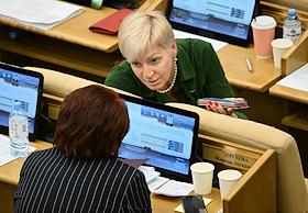 Пленарное заседание Государственной думы (ГД) России. Заместитель председателя комитета ГД России по экологии, природным ресурсам и охране окружающей среды Жанна Рябцева во время заседания.