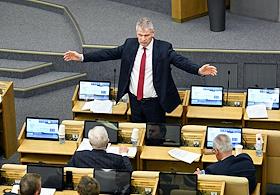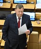 Пленарное заседание Государственной думы (ГД) России. Председатель комитета ГД России по безопасности и противодействию коррупции Василий Пискарев перед началом заседания.