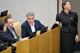 Пленарное заседание Государственной думы (ГД) России. Заместитель председателя комитета ГД России по охране здоровья Алексей Куринный (в центре) во время заседания.