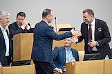 Пленарное заседание Государственной думы (ГД) России. Слева направо: первый заместитель председателя комитета ГД России по просвещению Яна Лантратова, председатель партии "Справедливая Россия – За Правду", руководитель фракции "Справедливая Россия – За Правду" в Государственной думе (ГД) России Сергей Миронов и заместитель руководителя фракции "Справедливая Россия- За правду" в ГД России Андрей Кузнецов перед началом заседания.