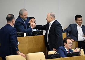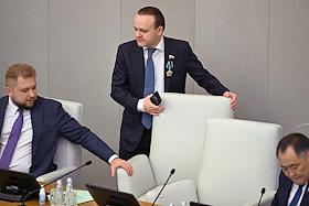 Пленарное заседание Государственной думы (ГД) России. Заместители председателя ГД России Борис Чернышов (слева) и Владислав Даванков (в центре) во время заседания.