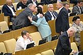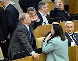 Пленарное заседание Государственной думы (ГД) России. Член комитета ГД России по обороне Виктор Заварзин (в центре) и заместитель председателя комитета ГД России по туризму и развитию туристической инфраструктуры Наталья Костенко (второй справа) во время заседания.