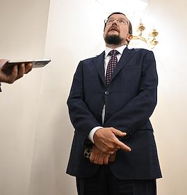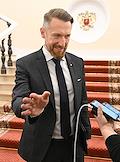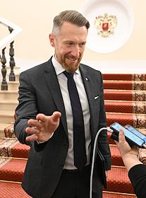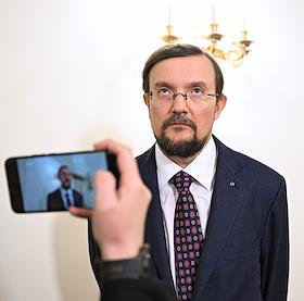 Встреча президента России Владимира Путина с членами Общероссийской общественной организации "Деловая Россия", участниками XX Форума-съезда организации в режиме видеоконференции. Председатель общероссийской общественной организации "Деловая Россия" Алексей Репик во время пресс-подхода после встречи.
