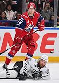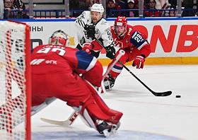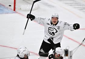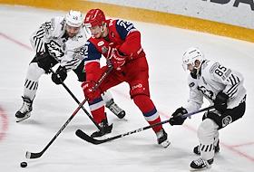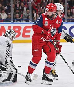 Фонбет - Континентальная хоккейная лига (КХЛ). Чемпионат сезона 2024/25. Финал. Игра первая. Матч между командами "Локомотив" (Ярославль) - "Трактор" (Челябинск) на стадионе "Арена 2000". Игрок команды "Локомотив" Александр Радулов (в центре) во время матча.