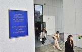 Жанровая фотография. Новосибирский Государственный Университет (НГУ). Студенты выходят из корпуса НГУ.