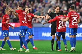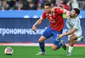 Фонбет - Кубок России по футболу 2024/25. Финала. Матч между командами ЦСКА (Москва) - "Зенит" (Санкт-Петербург) на стадионе "ВЭБ Арена". Игрок команды ЦСКА Кристиян Бистрович (в центре) во время матча.