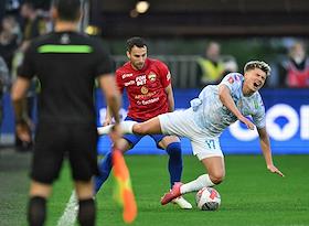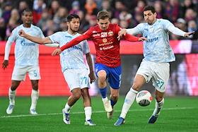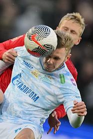 Фонбет - Кубок России по футболу 2024/25. Финала. Матч между командами ЦСКА (Москва) - "Зенит" (Санкт-Петербург) на стадионе "ВЭБ Арена". Игрок команды "Зенит" Страхиня Эракович (справа) во время матча.