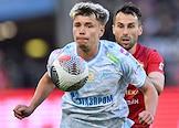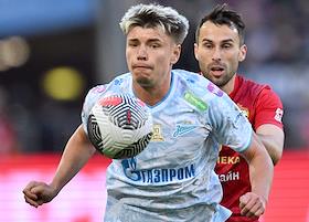 Фонбет - Кубок России по футболу 2024/25. Финала. Матч между командами ЦСКА (Москва) - "Зенит" (Санкт-Петербург) на стадионе "ВЭБ Арена". Игрок команды "Зенит" Максим Глушенков (слева) во время матча.