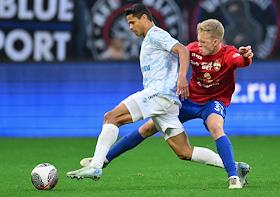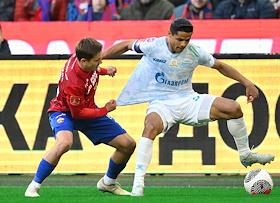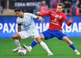 Фонбет - Кубок России по футболу 2024/25. Финала. Матч между командами ЦСКА (Москва) - "Зенит" (Санкт-Петербург) на стадионе "ВЭБ Арена". Игрок команды ЦСКА Мойзес (слева) во время матча.