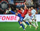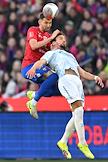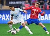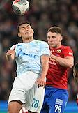 Фонбет - Кубок России по футболу 2024/25. Финала. Матч между командами ЦСКА (Москва) - "Зенит" (Санкт-Петербург) на стадионе "ВЭБ Арена". Игрок команды "Зенит СТрахиня Эракович (в центре, слева) и игрок команды ЦСКА Аббосбек Файзуллаев(в центре, справа) во время матча.