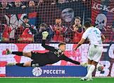Фонбет - Кубок России по футболу 2024/25. Финала. Матч между командами ЦСКА (Москва) - "Зенит" (Санкт-Петербург) на стадионе "ВЭБ Арена". Вратарь команды ЦСКА Владислав Тороп (слева) во время матча.