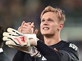 Фонбет - Кубок России по футболу 2024/25. Финала. Матч между командами ЦСКА (Москва) - "Зенит" (Санкт-Петербург) на стадионе "ВЭБ Арена". Вратарь команды ЦСКА Владислав Тороп во время матча.