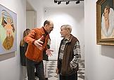 Церемония открытия выставки "Персона" в галерее Alina Pinsky. Художник Борис Орлов (справа) на церемонии.