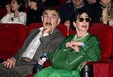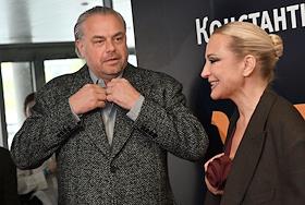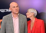 Премьера нового проекта Московского художественного театра (МХТ) имени Чехова - киноверсии спектакля "Жил. Был. Дом" в кинотеатре "Октябрь". Владелица компании PR-International Светлана Бондарчук (справа) и директор дизайнерского агентства Bestinspace Design Сергей Харченко на премьере.