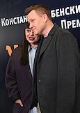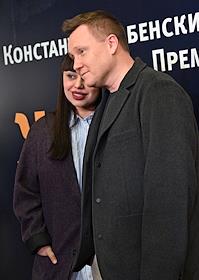 Премьера нового проекта Московского художественного театра (МХТ) имени Чехова - киноверсии спектакля "Жил. Был. Дом" в кинотеатре "Октябрь". Актер Леонид Каневский и его супруга Анна Березина на премьере.