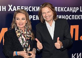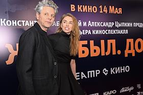 Премьера нового проекта Московского художественного театра (МХТ) имени Чехова - киноверсии спектакля "Жил. Был. Дом" в кинотеатре "Октябрь". Певец Дмитрий Маликов и его супруга Елена на премьере.
