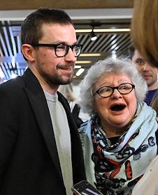 Премьера нового проекта Московского художественного театра (МХТ) имени Чехова - киноверсии спектакля "Жил. Был. Дом" в кинотеатре "Октябрь". Певец Илья Гуров (слева) и актер Игорь Верник (справа) на премьере.