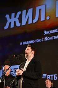Премьера нового проекта Московского художественного театра (МХТ) имени Чехова - киноверсии спектакля "Жил. Был. Дом" в кинотеатре "Октябрь". Художественный руководитель МХТ имени Чехова Константин Хабенский на премьере.