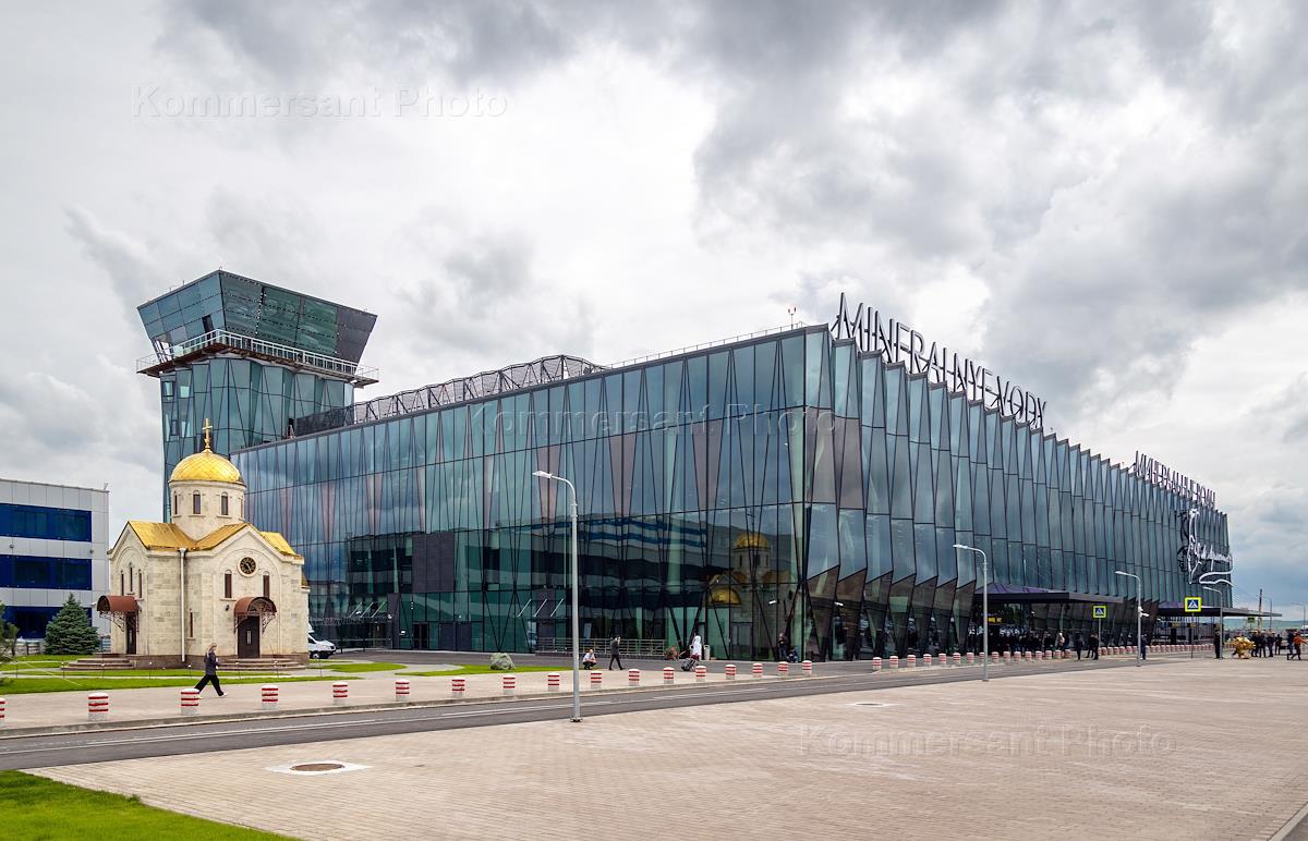 Первый день работы нового терминала Международного аэропорта Минеральные Воды имени М.Ю.Лермонтова. Жанровая фотография. Виды аэропорта. Церковь Илии Пророка.