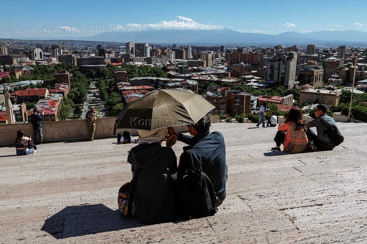 Виды Еревана. Жанровая фотография. Молодые люди на смотровой площадке.