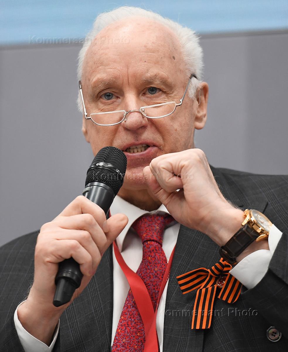 XIII Петербургский международный юридический форум (ПМЮФ) в конгрессно-выставочном центре (КВЦ) "Экспофорум". Сессия "Невыученные уроки Второй мировой войны: реалии неонацизма". Председатель Следственного комитета России Александр Бастрыкин во время сессии.