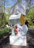 XIII фестиваль тюльпанов, приуроченный к 250-летию со дня рождения архитектора Карла Росси и 300-летию со дня рождения поэта Ивана Елагина, в Центральном парке культуры и отдыха (ЦПКиО) имени С.М.Кирова на Елагином острове. Жанровая фотография. Декоративная стела на входе.