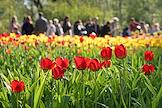 XIII фестиваль тюльпанов, приуроченный к 250-летию со дня рождения архитектора Карла Росси и 300-летию со дня рождения поэта Ивана Елагина, в Центральном парке культуры и отдыха (ЦПКиО) имени С.М.Кирова на Елагином острове. Жанровая фотография. Красные тюльпаны.