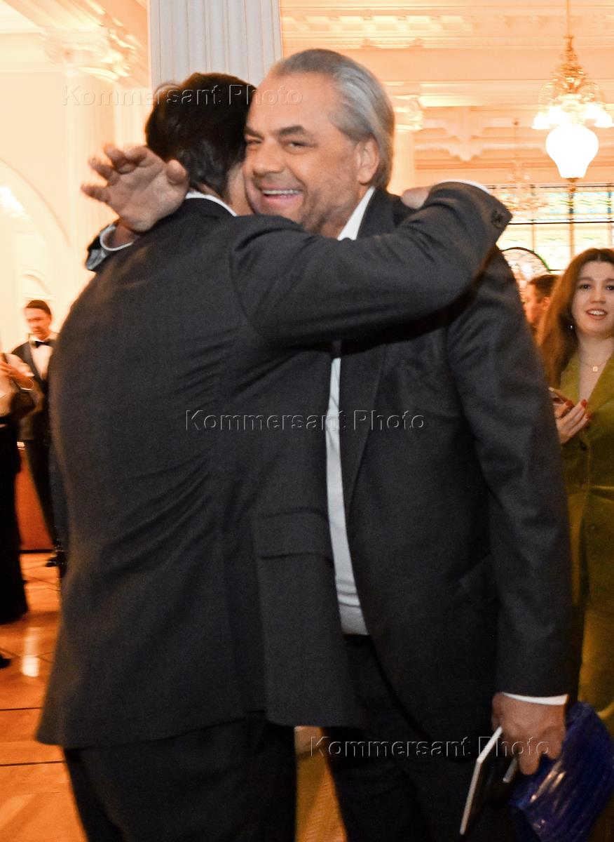 Премьера симфонии Nicole в исполнении оркестра musicAeterna под руководством дирижера Теодора Курентзиса в Московской государственной консерватории имени П.И. Чайковского. Член совета директоров Colliers International Владимир Сергунин (справа) перед началом концерта.