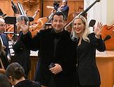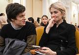 Премьера симфонии Nicole в исполнении оркестра musicAeterna под руководством дирижера Теодора Курентзиса в Московской государственной консерватории имени П.И. Чайковского. Предприниматель и сооснователь благотворительного фонда "Друзья" Ян Яновский (слева) и директор по развитию партнерских и клиентских программ МР Групп Ирина Елизарова (справа) перед началом концерта.