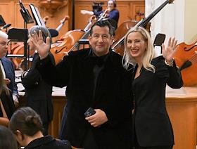 Премьера симфонии Nicole в исполнении оркестра musicAeterna под руководством дирижера Теодора Курентзиса в Московской государственной консерватории имени П.И. Чайковского. Совладелица виноградников и завода игристых вин "Золотая Балка" Снежана Георгиева перед началом концерта.
